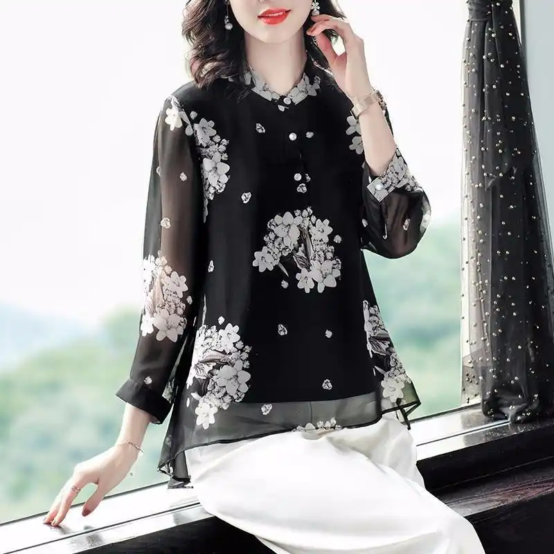 Fashion Stand Collar Floral Print Chiffon Shirt Female 3 4 Sleeve Large Size Loose Button Decoration Stitching Blouse Women 2020 Blouses Shirts Aliexpress from ae01.alicdn.com Women's blouses for formal & casual looks. Coloring printed long sleeve blouse. The fabrics of these long blouse pattern are not only appealing but are also easy to clean and maintain. Slay the beach look with pretty florals, or walk your. Style:chic type:blouses material:polyester neckline:cold shoulder sleeve style:three quarter length length:regular pattern type:floral decoration:studded fit type:regular occasion:daily package include:1*blouse. Button down shirt men casual blouse floral pattern mens tops shirts women fashion. Floral blouse design with black flower patterns. Download floral pattern stock vectors.